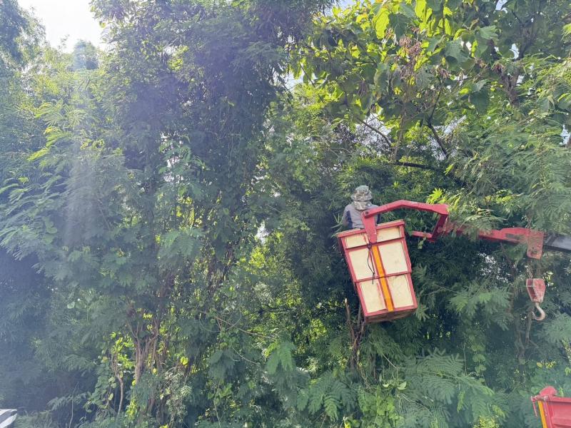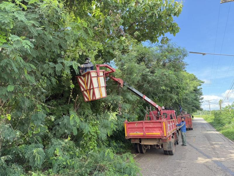 งานป้องกันและบรรเทาสาธารณภัย. ลงพื้นที่เพื่อตัดกิ่งไม้หลังได้รับคำร้องจากผู้นำในหมู่บ้าน