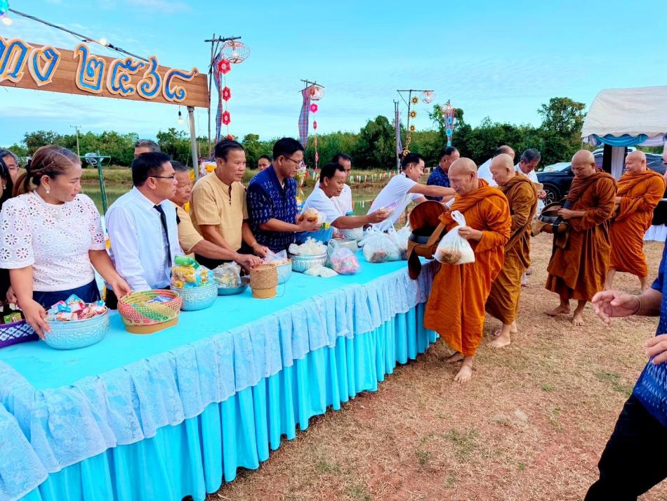 นายสนั่น ชินมา นายกเทศมนตรีตำบลพันนา พร้อมคณะผู้บริหาร สมาชิกสภาเทศบาล พนักงานเทศบาล ผู้นำหมู่บ้านและประชาชนในพื้นที่ร่วมทำบุญตักบาตร [5 พฤศจิกายน 2568]