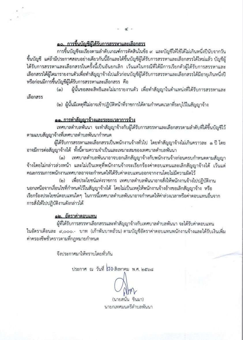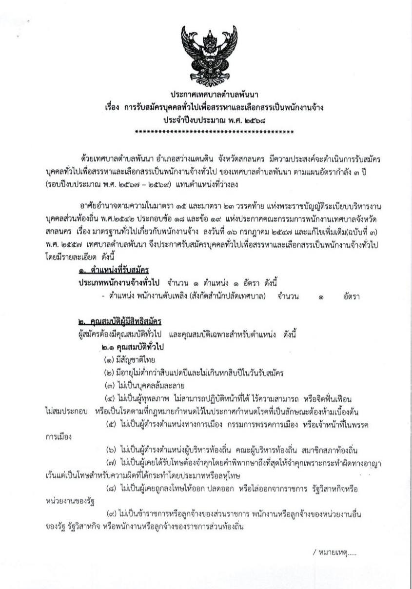 ประกาศเทศบาลตำบลพันนา เรื่อง การรับสมัครบุคคลทั่วไปเพื่อสรรหาและเลือกสรรเป็นพนักงานจ้าง ประจำปีงบประมาณ พ.ศ.๒๕๖๘