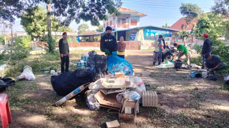 กองสาธารณสุขและสิ่งแวดล้อม ออกรับซื้อขยะที่บ้านเมืองทอง ม.๑๑