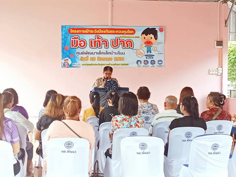 วันที่ ๒๘ สิงหาคม ๒๕๖๘ ศูนย์พัฒนาเด็กเล็กบ้านโมนโครงการเฝ้าระวังโรคมือ เท้า ปาก ประจำปี ๒๕๖๘