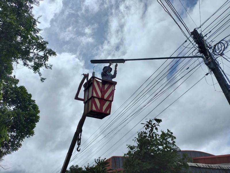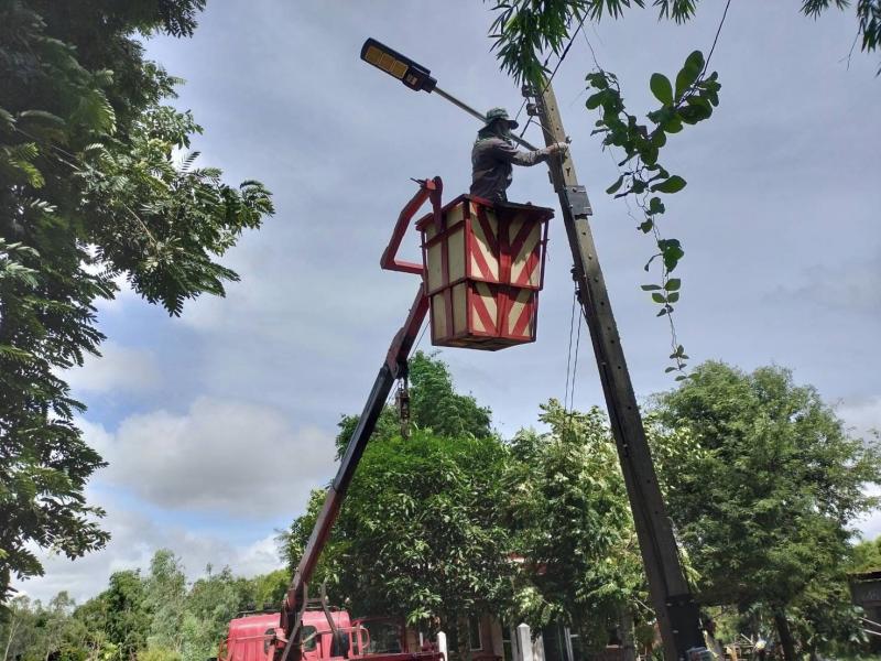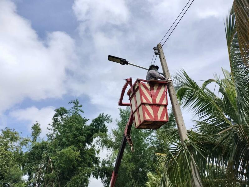 กองช่าง เทศบาลตำบลพันนา ออกซ่อมแซมไฟฟ้าส่องสว่างบ้านโมน บ้านแย้ และย้ายโซล่าเซลล์ที่บ้านพันนา