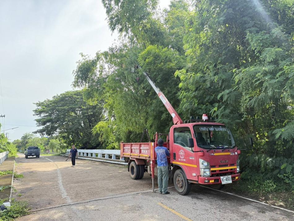 งานป้องกันและบรรเทาสาธารณภัย. ลงพื้นที่เพื่อตัดกิ่งไม้หลังได้รับคำร้องจากผู้นำในหมู่บ้าน [7 กรกฎาคม 2568]